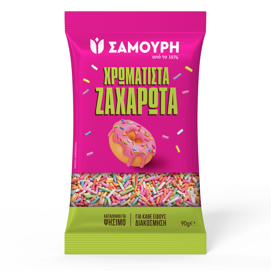 - Παγώνουμε για 2-3 ώρες στην κατάψυξη και σερβίρουμε με Τρούφα Σοκολάτα Υγείας ή Πολύχρωμα Ζαχαρωτά ΣΑΜΟΥΡΗ.